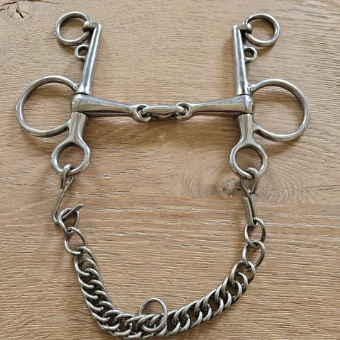 Pesoabid i stål til hest. Biddet har enkeltleddet mundstykke og flere ringe i hver side til variation af tøjleføring. Kan bruges med eventuelt to tøjler afhængigt af ønsket indvirkning.