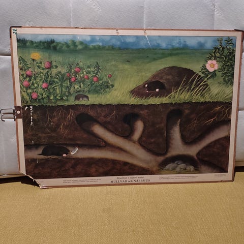Nils Jivek undervisningsplakat med motiv af myretue og forskellige insekter. Plakaten viser detaljerede illustrationer af myrer, larver og andre skovinsekter samt deres udviklingsstadier. Velegnet som biologisk eller naturhistorisk vægplakat til undervisning eller dekoration i rum med natur- og insekttema.