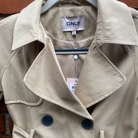 ONLY jakke til pige i str. 158. Jakken er beige og fremstillet i polyester med glat foer. Modellen har krave, knaplukning foran og to store påsatte lommer foran. Velegnet som let overtøj til hverdag og overgangsvejr.