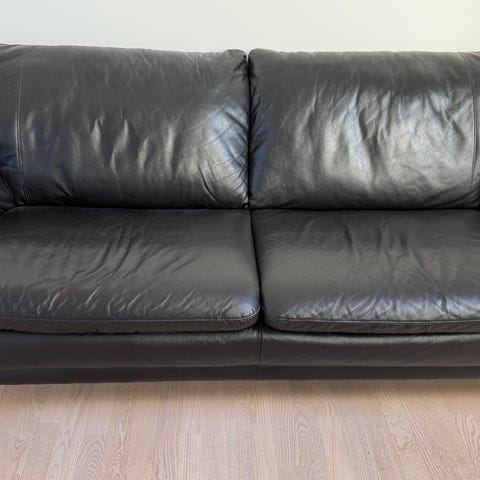 Lækker 2,5 personers kvalitets sofa i ægte bovinelæder. Meget lidt brugt. Siddehøjde 48 cm.