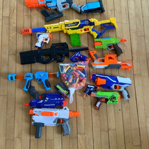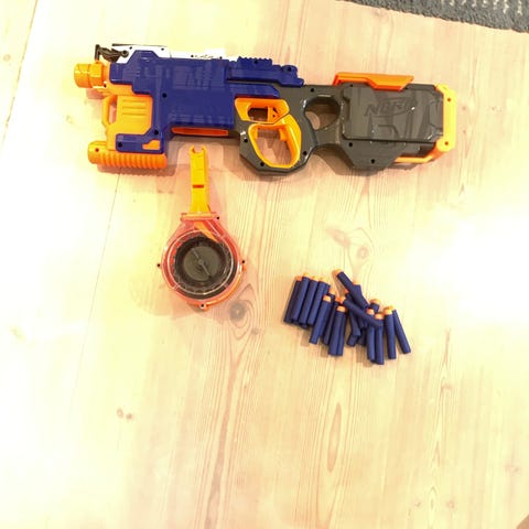Nerf legetøjsblaster hvid orange med magasiner og skumdartpile
