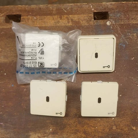 10 stk. brugte hvide LK FUGA 1-polet afbryder med ledelys, sælges samlet for 500 kr.