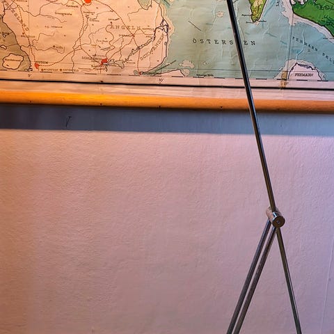 Gulvlampe 141 cm høj , skærm 30 cm i diameter.