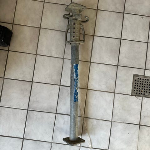 Teleskopisk støtteben i stål. Egnet til midlertidig understøtning ved byggeri eller renovering, f.eks. til afstivning af dæk, bjælker eller vægge. Justerbar længde via låsebolt og gevindspindel. Galvaniseret udførelse med fod- og topplade til fastgørelse mod underlag og konstruktion.