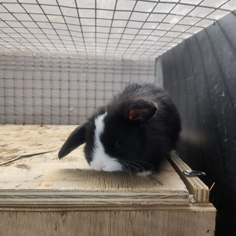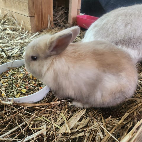 Disse 2 smukker minilop unger søger nye hjem fra den 6/5... de er nysgerrige og vil gerne snakke.. de er vant til grønt og foder vi selv blander.. inden afrejse vil de så klippet klør og der hører 1 kg foder med samt afkomstattest..