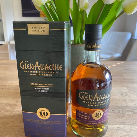GlenAllachie 18 Years single malt Scotch whisky på 70 cl flaske. Whiskyen er lagret i 18 år og tappet ved 46 % alkohol. Leveres i original æske, som vist på billederne.