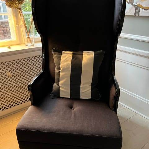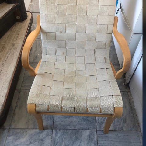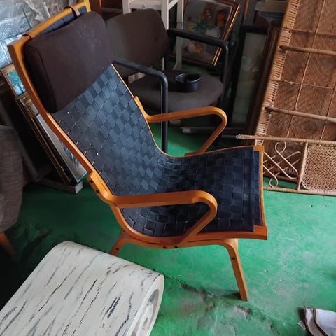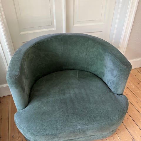 FREDRIK MATTSSON, lænestol, "Innovation c" for Blue Station, buet form på drejelig metalfod. Fast polstret ryg og sæde, sædehøjde ca. 46, 77x70x60 cm. Stolen fremstår i en flot stand. Stolen kan leveres i Københavnsområdet for en lille mere betaling.
