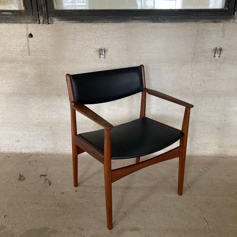 Klassisk armstol i dansk design fra 1950'erne eller 1960'erne, som oftest tilskrives designeren Poul M. Volther og er produceret af Frem Røjle.