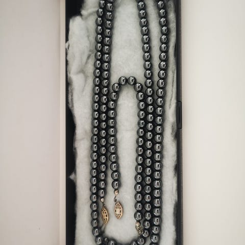 Gammel perlemorsbroche med sten