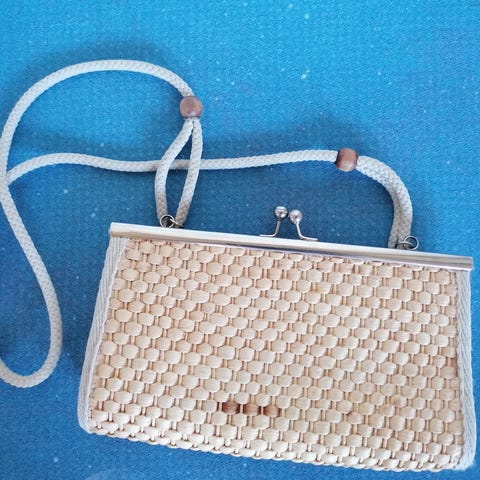 Sommertaske med skulderkæde af "guld". Ukendt mærke, "made in italy". Retro.