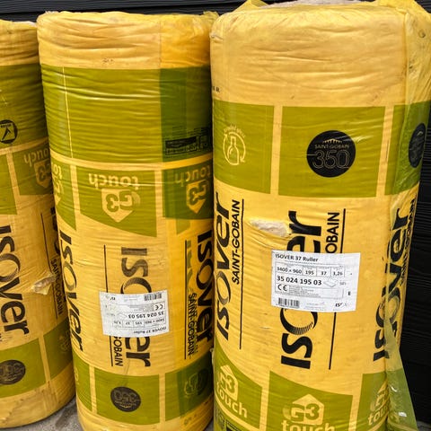 24 stk ISOVER 37 Ruller isolering med målene 6300 x 960 x 95 mm. Rullen har en varmeledningsevne på 0,037 W/mK. Hver rulle har et samlet areal på 6,05 m².