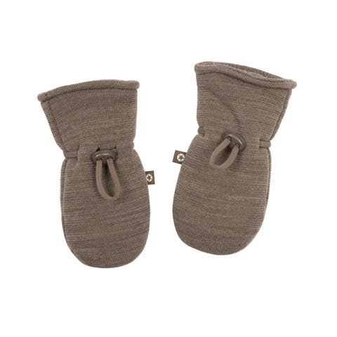 Lufferne er lavet af 100% merinould og kan strammes ind omkring håndledende, så de ikke falder af barnet.