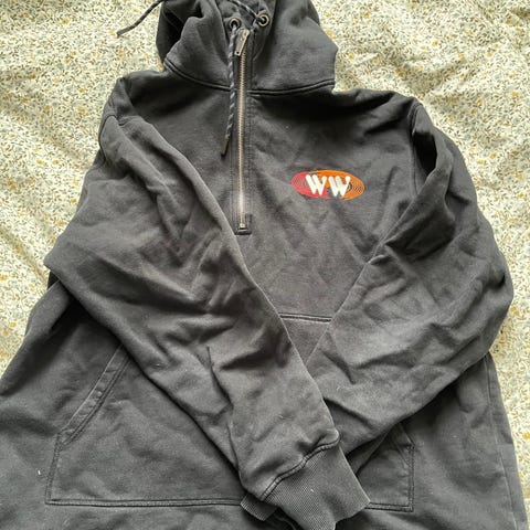 Wood Wood hættetrøje til herre i grå bomuld, størrelse M. Trøjen har hætte med snøre og lange ærmer.
