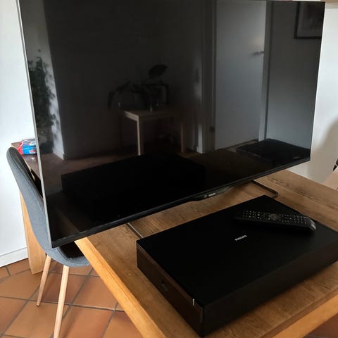 TV’et fungerer perfekt uden fejl eller skader. Flot 4K billede med HDR og Philips’ Ambilight, som giver lys bag TV’et og en markant bedre seeroplevelse.