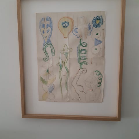 Litografi, Henry Heerup, motiv: Kærlighedsankeret, b: 78cm h: 72cm, Meget flotte farver og et perfekt motiv til bryllupsgave, barnedåb eller anden kærlighedserklæring. Prof. Indrammet med passepartout og ramme i sølv/nister. UV beskyttelse museums glas.