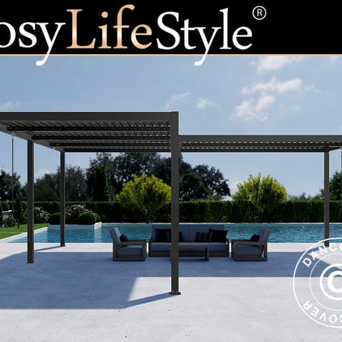 Bioklimatisk pergola pavillon San Pablo Alu+, Open Side, 3x4m, Sort/Hvid