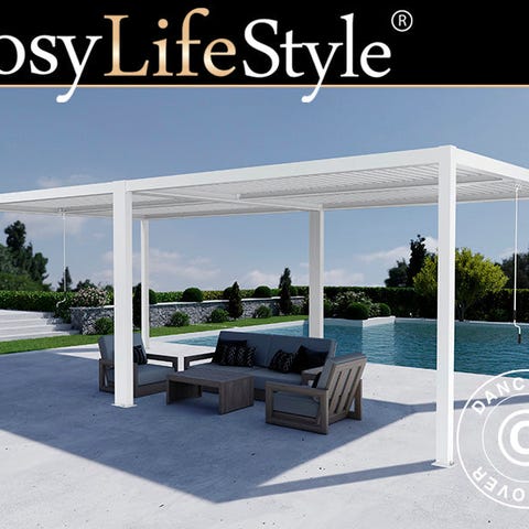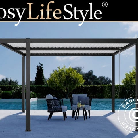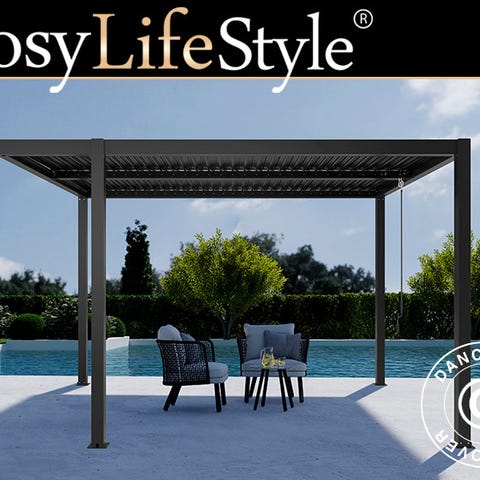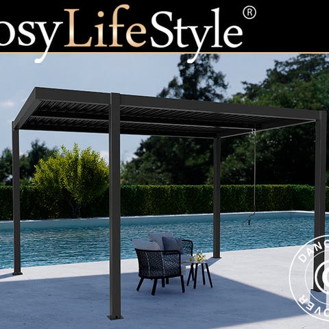 Bioklimatisk pergola pavillon San Pablo Alu+, Open Side, 4x4m, Sort/Hvid
