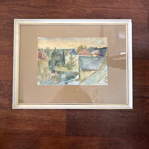 Kirsten Seeberg maleri fra 1998, der forestiller en dame omgivet af flere hvide fugle. Maleriet har en dominerende rosa og lilla farvepalette og er indrammet. Signeret af kunstneren i nederste højre hjørne.