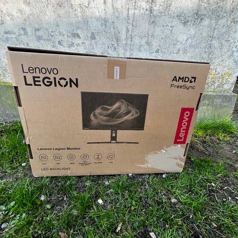 Lenovo Legion skærm på 23.5 tommer. Skærmen egner sig til brug med stationær computer, f.eks. til gaming eller kontorarbejde. Leveres i original emballage som vist på billedet. Yderligere tekniske specifikationer fremgår af producentens oplysninger for denne Lenovo Legion model. Har været åbnet, men ikke brugt. Har 3 styks, 1500 kr samlet for alle 3