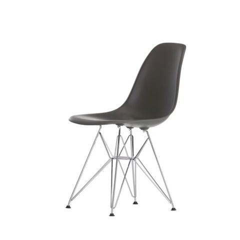 Sort plastikstol med en elegant, buet ryg og ben i krom. Designet er minimalistisk og funktionelt, perfekt til moderne indretning.