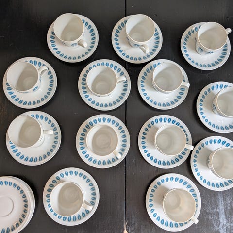 Porcelæn, Kaffekopper, Lotus fra Lyngby Porcelæn Denmark, To sæt kaffekopper med undertallkeren. Super flotte, den ene har en stjernerevne indvendig, se foto, men ikke udvendig.
