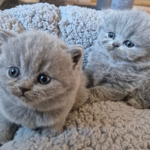 Mor er blå Britsh longhair og ses på foto. Faren er en blå British shorthair.