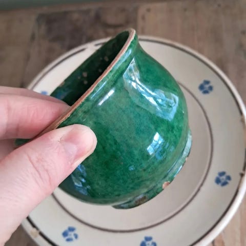 Meget smuk gammel kähler kop med underkop, i den fineste grønne glasur