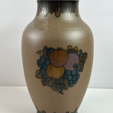 Hjorth Keramik er en af Danmarks ældste keramikværksteder, grundlagt i 1862, og kendt for deres solide håndværk og klassiske danske formsprog. Denne vase er et fint eksempel på bornholmsk studiokeramik med både tyngde og karakter.