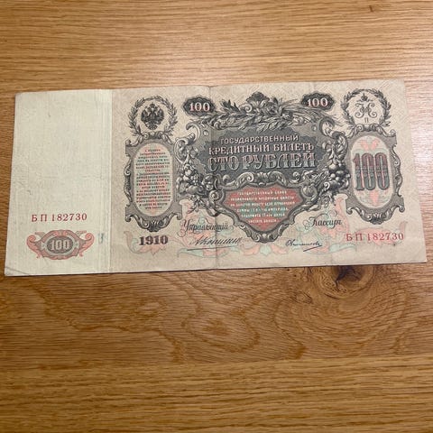 Original russisk 1 rubel seddel fra 1898, udstedt under det russiske kejserrige.