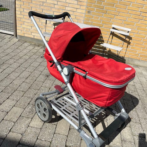 Flot rød Graco kombivogn med barnevognskasse, klapvognssæde og autostol.