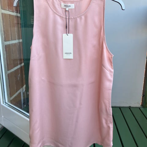 Blå Zalando top str. M. Polyester. Brystomkreds 95 cm, hellængde 65 cm. Et tyndere foer også af polyester. Falder flot.