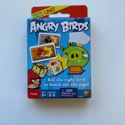 Angry Birds Knock On Wood brætspil. Spillet er baseret på Angry Birds-universet og går ud på at bygge konstruktioner med klodser og figurer samt skyde dem ned med en slynge. Indeholder forskellige fugle- og grisefigurer, byggeklodser i plast, kort og tilbehør til at opstille og gennemføre baner. Spillet er egnet til flere spillere og kan spilles ved bordet som en fysisk udgave af Angry Birds-konceptet.