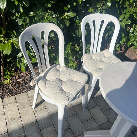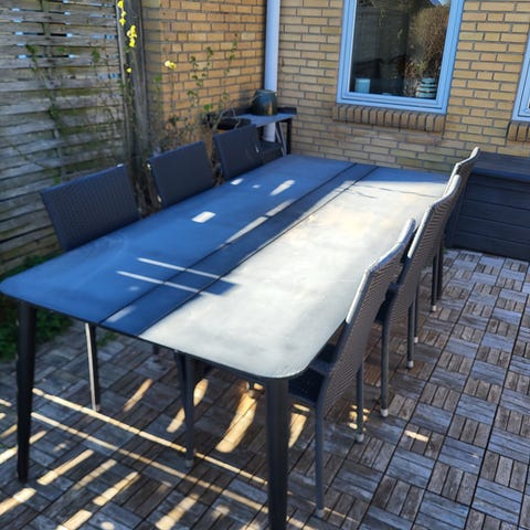Hvis du køber bordet, kan du få fire fletstole + hynder gratis med.