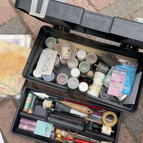 Porcelænsmaling sæt bestående af 24 glas med porcelænsfarver, pensler og tilbehør opbevaret i en værktøjskasse. Der medfølger hvide porcelænsdele i forskellige former, som kan dekoreres, blandt andet små skåle, lysestage og andre emner. Sættet indeholder desuden en vejledningsbog om porcelænsmaling med beskrivelser af teknikker og dekoration. Velegnet til kreativt arbejde med maling og dekoration af porcelæn. Byd