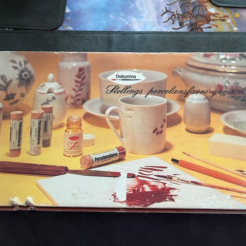 Porcelænsmaling sæt med farver, pensler, porcelænsdele og vejledningsbog