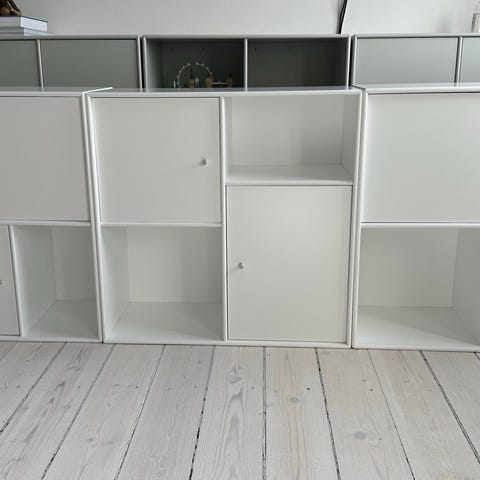 Utroligt lækkert Montana skænk i farven mushroom. Kun 1,5 år gammelt og i perfekt stand! Perfekt til skænk eller som vi har brugt den til: TV møbel. Der følger ophængsbeslag med til vægmontering.