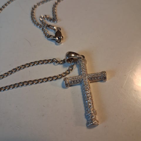Længde: 48 cm. Vedhæng: 3 x 4 cm.