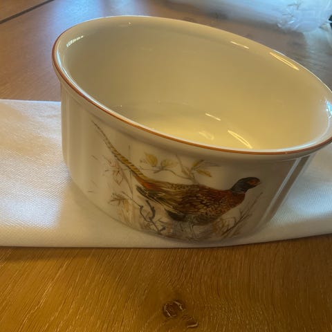 Mads Stage Kaffefilterholder med motiv agerhøns og ranke virkelig fin stand og sjældent set til salg denne smukke holder kan blive din for kr 2000.