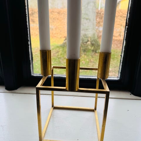 Mogens Lassen klassiske kubus lysestage i kobber. Designet i 1962. Har ikke pudset den, da den er fin med patina. Kubus måler 14cm x 14cm.