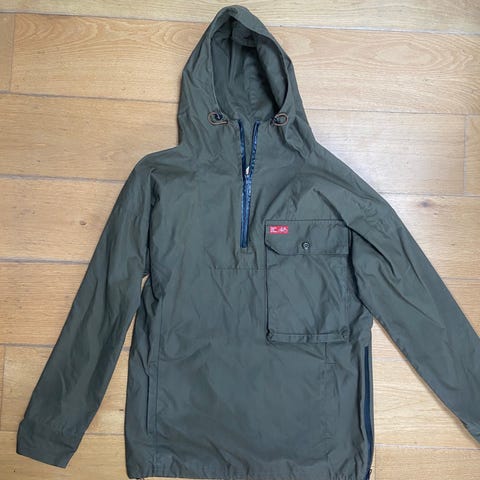 Everest GoldFlex System anorak jakke i grøn. Jakken har hætte, halv lynlås og trykknapper ved halsen samt stor frontlomme. Justerbare ærmeafslutninger med velcro og snøre forneden giver mulighed for at tilpasse pasformen. Velegnet som yderjakke til udendørs brug.