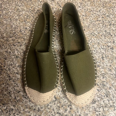 Nye espadrillers i grønt stof sælges. Fejlkøb. Pris stadig på. Nypris: 80kr.