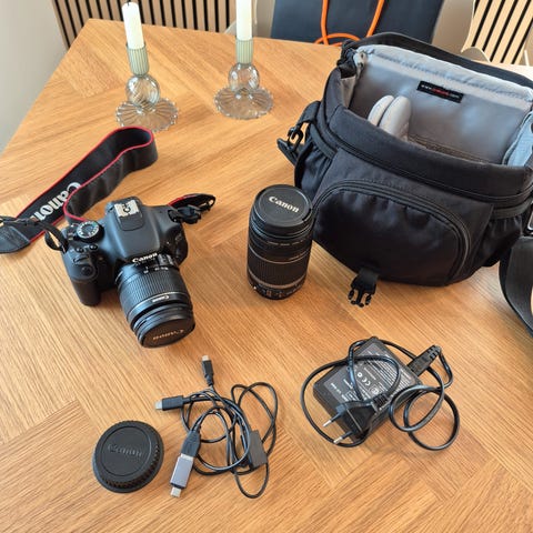 Canon, 600D, 18 megapixels, et rigtigt godt begynder kamera for dig der vil i gang med fotografere.. det har en justerbar skærm hvilket er virkelig effektiv til video/billedet optagelse. Mulighed for nemt overførsel billeder til din pc med USB kabel. Optager FHD video. Fungerer som skal. Og klar til en ny ejer :) (shutter count 3577)
