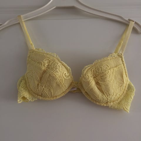 Ny pæn mørkelilla BH med pude, blondekant rundt. Fejlkøb. Pris stadig på.