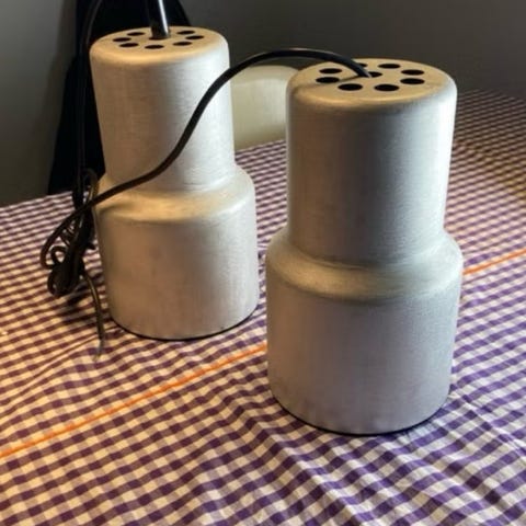 Søde bordlamper, Dissing dra 1960'erne, diameter ca 10 cm. Al keramik intakt.