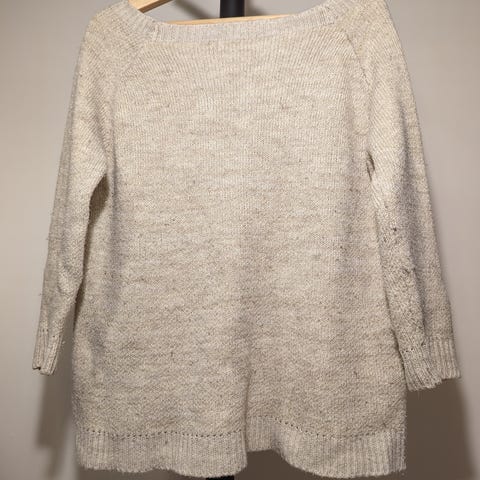 Strikkjole, H&M, str. M, Råhvid , 65%polyamid/24%angora/7%polyester/4%metalise.fiber, Næsten som ny, Strikkjole fra H&M i råhvid m. sølvtråd, bådformet halsudskæring str. M.