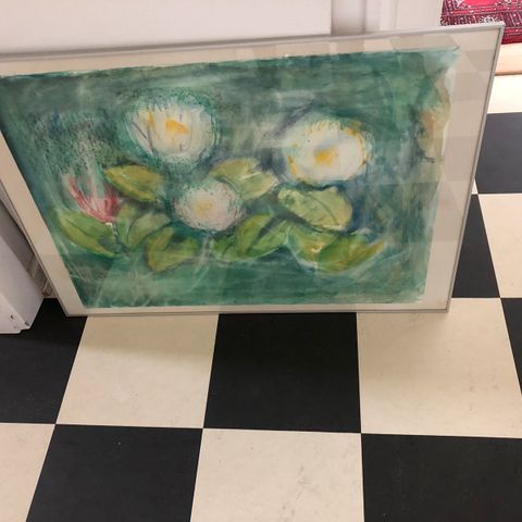 Akvarel, Ukendt, motiv: Blomster/Have