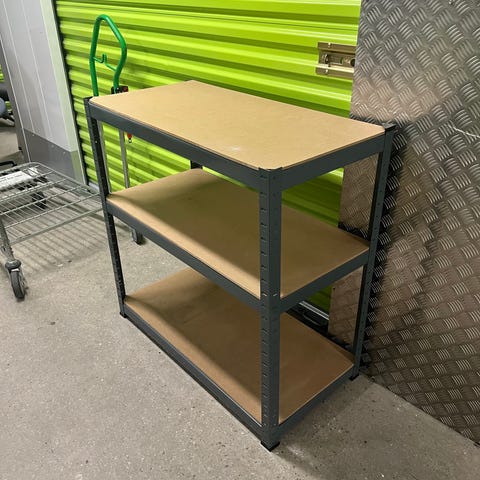 Reol med to hylder, passer perfekt ud som et entreemøbel eller lignende. Har nogle ridser, specielt på den nederste hylde, men ikke noget jeg selv synes man bemærker, medmindre man står og lyser med en lommelygte 😁 skal bæres ned fra 1. Sal