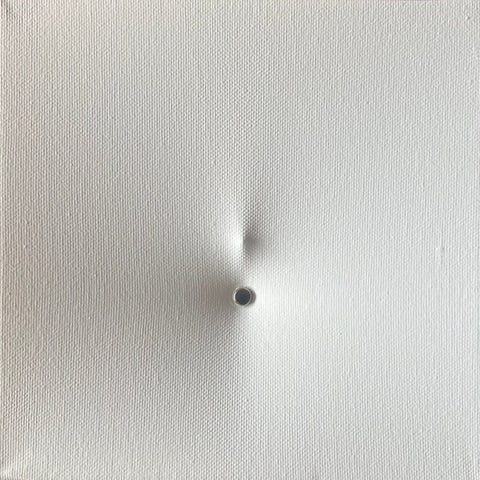 Det er et frivilligt fravalg, hvis formål er at fremhæve materialet og det rum, det optager, og gennem værket antyder han en form for udefineret energi.