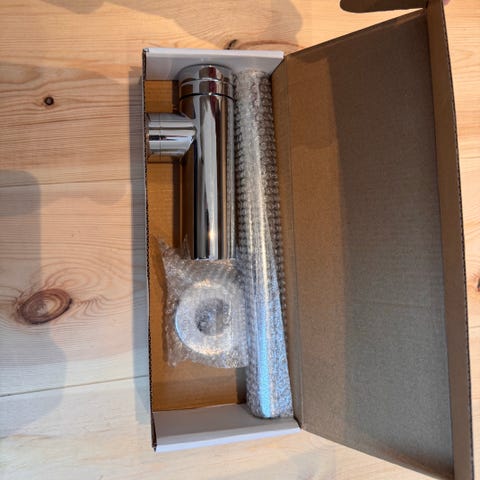 2 excentriske tilgangsstykker i krom på 1/2” x 3/4” med rosetter til bruse- og badekararmaturer. Anvendes til at dække og beskytte gennemføringer ved rørinstallationer.