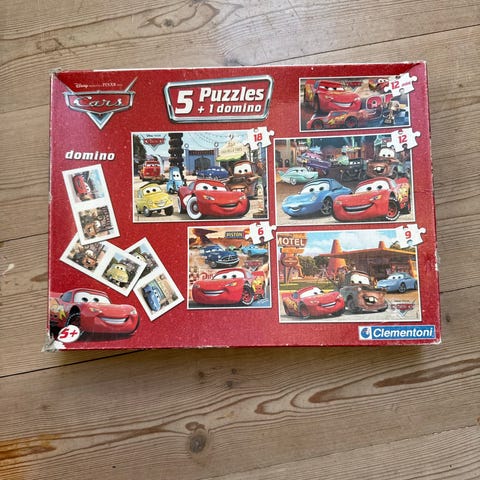 Disney Pixar puslespil med motiver fra Cars og flyvemaskiner-universet. Sættet indeholder flere små puslespil med forskellige figurer og scener. Velegnet som aktivitet for børn, der kan lide Disney Pixar-tegneserier og puslespil. Antal brikker og mål på de enkelte puslespil fremgår af æsken, hvis det ønskes angivet i annoncen.
